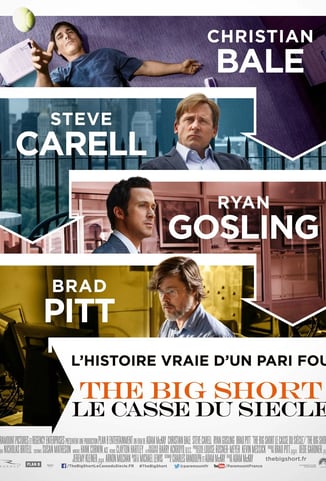 The Big Short est une adaptation du livre de Michael Lewis retraçant la crise des subprimes de 2007-2008. Le film suit plusieurs acteurs marginaux du monde de la finance qui, dès 2005, anticipent l'effondrement du marché immobilier américain et parient contre les titres adossés à des crédits hypothécaires risqués.