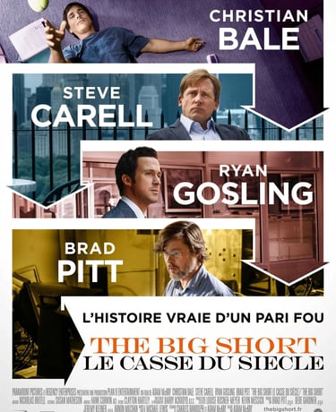 The Big Short est une adaptation du livre de Michael Lewis retraçant la crise des subprimes de 2007-2008. Le film suit plusieurs acteurs marginaux du monde de la finance qui, dès 2005, anticipent l'effondrement du marché immobilier américain et parient contre les titres adossés à des crédits hypothécaires risqués.